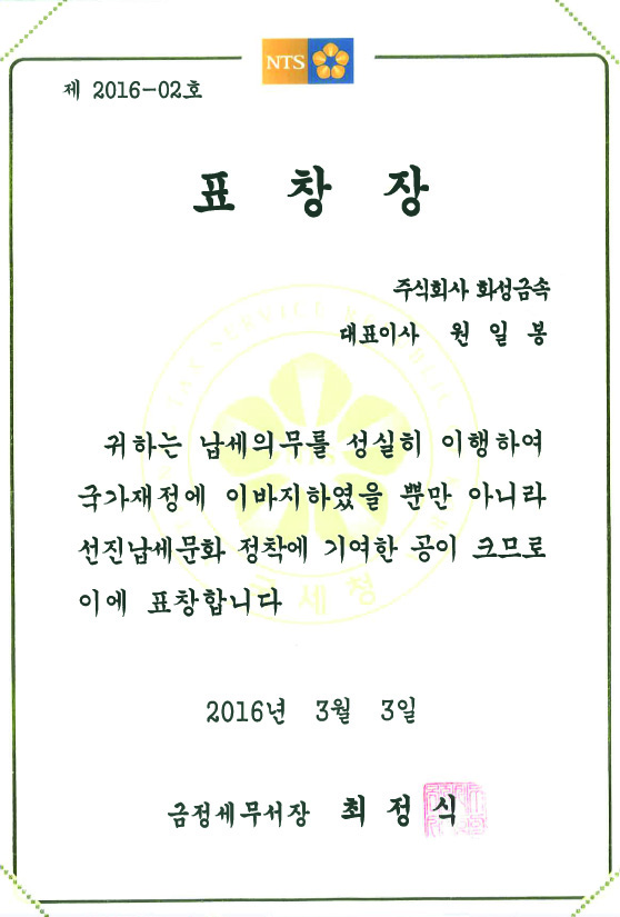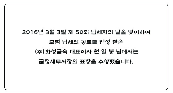 (주)화성금속 원 일 봉 대표이사 모범납세자 표창